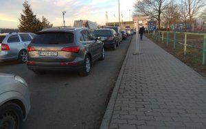 Черга з автомобілів практично не рухається з п'ятої години ранку. На кордоні утворився величезний затор. Водії вважають, що це свідомий протест через сцепоперацію проти прикордонників.