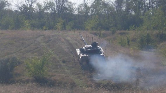 "Екіпажі бойових машин відпрацьовують свою майстерність водіння в складних умовах місцевості з теоретичним пошкодженням блоків візуального спостереження. Також відпрацьовується прохід в мінно-вибуховій загороді з подоланням протитанкового рову і ділянки загороджень та маневрувань", - йдеться в повідомленні.