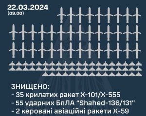 Під час атаки знищено 55 Shahed, 35 крилатих ракет Х-101/Х-555 та дві керовані авіаційні ракети Х-59.