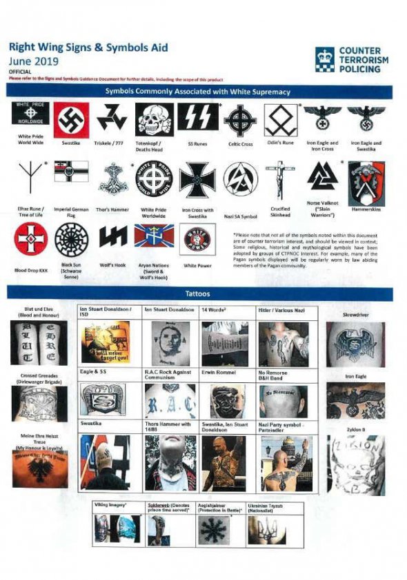 Британська поліція включила до антитерористичного посібника низку ненасильницьких організацій та символів. Спільноту із захисту довкілля Greenpeace назвали терористичною. У частині з татуюваннями зобразили герб України, який підписано: "Український тризуб (націоналістичний)", повідомляє The Guardian.