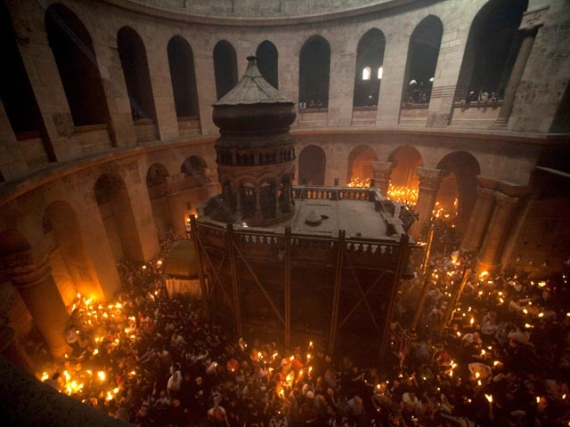 Сьогодні в храмі Гробу Господнього в Єрусалимі зійшов Благодатний вогонь. Десятки тисячі віруючих отримали частинку полум'я, повідомляє ИТАР-ТАСС.