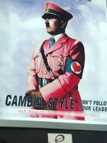 На плакатах зображений Адольф Гітлер у рожевій формі, а на нарукавній пов'язці у нього замість свастики зображено червоне серце. Рекламний гасло говорить: "Зміни стиль - не йди за своїм лідером".