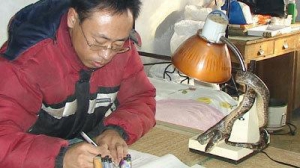 Ю Фенг, з містечка Фушунь, що в китайській провінції Ляонін, знайшов вмираючу чорну змію біля свого будинку. Він почав лікувати плазуна лікарськими травами і за 20 днів змія одужала.