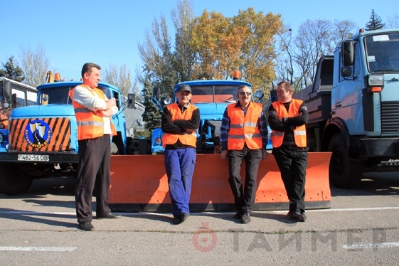 Незважаючи на ясний і не по-жовтневому теплий день - стовпчик термометра показує близько 15 градусів - комунальники вчилися боротися з наслідками снігопаду.