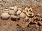 Поряд з людськими кістками тягнулися ряди керамічних посудин. Деякі з них були порожні, а деякі містили в собі цікаві похоронні пожертви. Найцікавішим виявився горщик із золотими прикрасами - бляхами, кільцями, розетками. Недалеко від нього лежали гранітні та алебастрові фігурки. Керівник дослідження Петер Пфелцнер вважає, що вони були привезені з Давнього Єгипту і підтверджують існування налагоджених торгових зв"язків між двома державами.