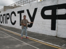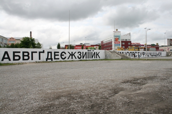 Тридцять три літери українського алфавіту намалювали на 85 метрах підпорної стіни в Тернополі до Дня Конституції. Триметрові літери 10 днів виводив 24-річний місцевий графітчик Олег Голубович з двома своїми друзями. Каже, що мета акції – нагадати українцям, скільки ж букв є в національній абетці.