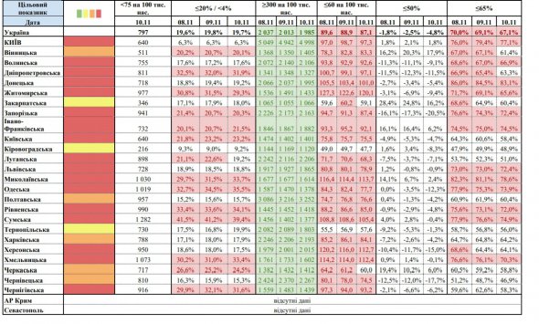 "Станом на 11 листопада до регіонів жовтої зони, крім Кіровоградської і Тернопільської областей, додали ще й Закарпатську", - ідеться в повідомленні.