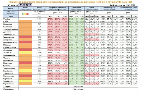 23 лютого в Україні скоротилася жовта зона карантину. Covid-ситуація погіршилася на Полтавщині.