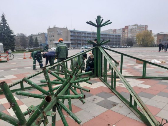У двох українських містах почали встановлювати новорічні ялинки на центральних площах.
