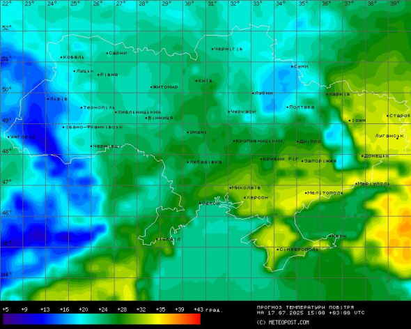 Завтра, 17 липня, помірні градуси переважатимуть на заході України, на Сумщині, Полтавщині та навіть частково на Дніпропетровщині.