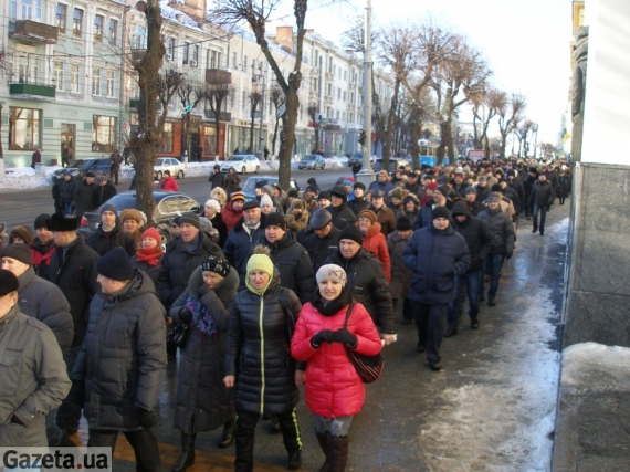 Вимагали владу вийти до них. Не дочекались. Перейшли до міської ради, де з народом розмовляли 4 заступника мера. Сам міський голова у відпустці. Звинувачували чиновників у тому, що місцеві телеканали не показують реального життя міста. І що цілодобовий намет "євромайданівців" відключили від електрики. Всі присутні підписали звернення, щоб не приймали рішення про введення надзвичайного стану. Його передадуть обласним депутатам.