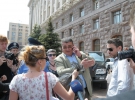 Навколо жінки та міліціонерів миттєво зібрався натовп операторів та журналістів. У ситуацію втрутився чоловік у діловому костюмі з величезним золотим перснем на середньому пальці.