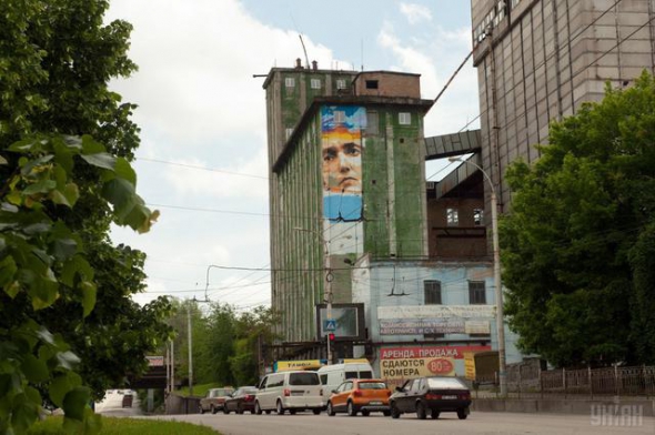 Мурал з портретом Надії Савченко, приурочений до дня народження української льотчиці, намалювали на 27-метровій стіні старого елеватора в Запоріжжі.