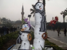 Мешканці турецького міста Стамбул зраділи першому снігу, який випав напередодні Нового року. Люди вийшли на вулиці ліпити сніговиків та скульптури. Вбрали їх у весільні та національні костюми.