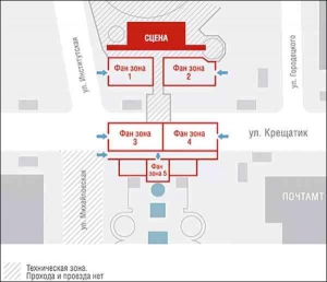 Глядачі, які не мають спеціальних запрошень, "неорганізовано" займатимуть місця на Майдані і Хрещатику.