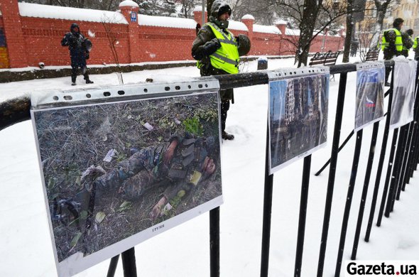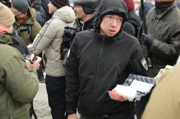 Консульство РФ: О 15:00 до дипустанови на вул. Старонаводницькій прийшли активісти добровільного руху ОУН Миколи Коханівського. Але прохід до консульства на початку вулиці перекрили нацгвардійці. Незважаючи на них, закидали консульство яйцями. Жбурляли їх через голови силовиків.