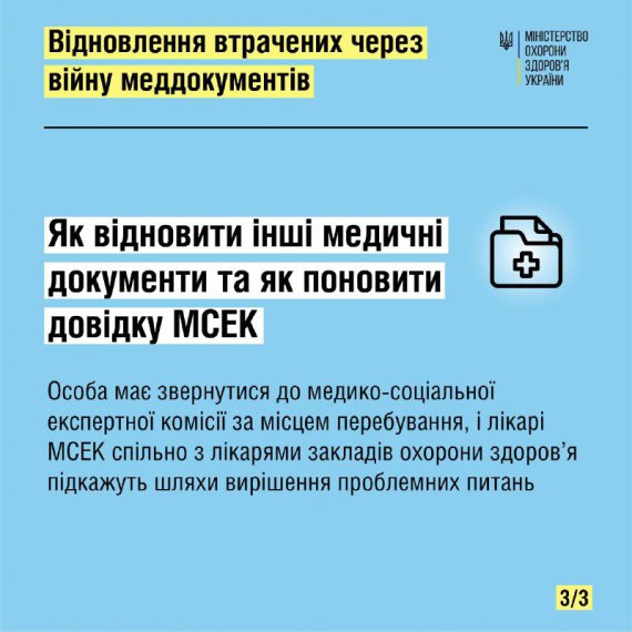 Тому МОЗ публікує інформацію про шляхи відновлення втрачених медичних документів", - ідеться в повідомленні.