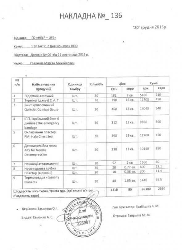 "Я вперше про ці аптечки чую! Я посадова особа в частині, яка відповідає за облік благодійної допомоги, яка надходить. Мені ніхто нічого не передавав. До того ж, в частині немає таких офіцерів як майор Давиденко і Кривошийко, підписи яких стоять у листі. Також ніхто не надавав повноважень Мар`яну Гавриліву на збір допомоги для дивізіону, як там пише. Деякі з бійців на його фото з аптечками – справді з нашої частини, тож будемо проводити перевірку", - заявив заступник з тилового забезпечення частини В2968 підполковник Павло Семенов.