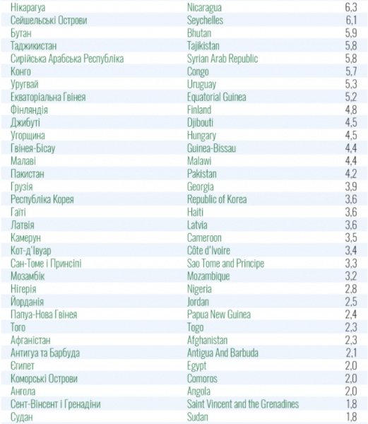 У зеленій зоні Росія, Франція, Сербія, Хорватія, Болгарія, Швеція та інші. Також у цю зону увійшла і Україна.