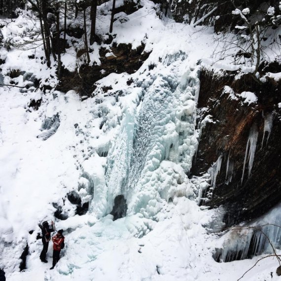 До замерзлого водоспаду вже ринулися туристи, щоб помилуватися дивом природи