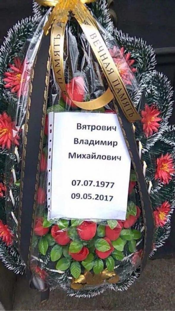 На вінку вказали "дату смерті" - 9 травня 2017 року.