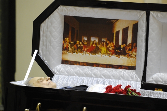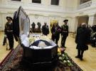 Труну з покійним привезли за годину до початку прощання на чорному катафалку. Всередину її занесли 8 чоловіків. Біля труни чергувала почесна варта Міністерства оборони.
