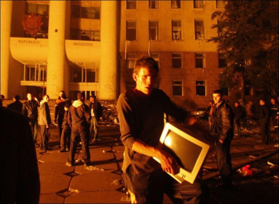 У будівлях парламенту та адміністрації президента безчинствували мародери, які забирали з собою всі цінні речі, що можна було винести, ламаючи і перевертаючи все інше. Уламки меблів та розламаної оргтехніки разом з паперами з кабінетів депутатів парламенту спалювалися на вулиці на вогнищах. У залі пленарних засідань молдавського парламенту розламані всі меблі, крісла, столи, трибуна для промовців. Зруйновані майже всі комунікації. Та ж доля спіткала і будівлю президентського палацу.