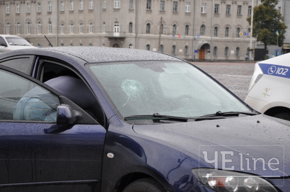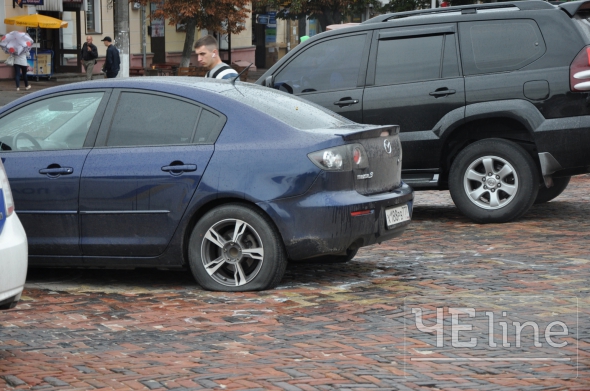 Вчора у Чернігові на Красній площі невідомі розбили лобове скло та прокололи всі колеса в легковика Mazda з російськими номерами.
