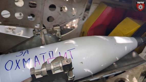 Воїни Об'єднаної штурмової бригади Національної поліції України "Лють" показали снаряди з написом "За Охматдит", якими будуть бити по російських окупантах.