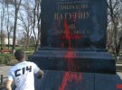У Києві активісти правої організацій "С14" та "Правого сектору" облили червоною фарбою пам'ятник радянському генералу Миколі Ватутіну.
