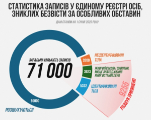"Наразі в реєстрі зниклих безвісти за особливих обставин, понад 71 тис. записів. Йдеться і про військових, і про цивільних. Лише з початку 2024-го майже 30 тис. людей отримали такий статус", - сказав він.