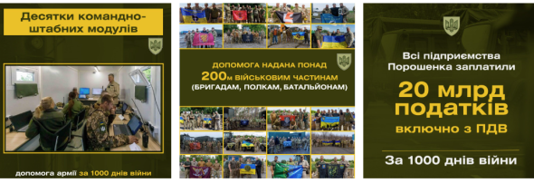 Як зазначив п'ятий президент під час виступу у Верховній Раді, у цій війні вирішується, чи буде далі існувати Українська держава, чи збережеться український народ. "Все ще велика робота лягає на плечі народу, волонтерів, донаторів і благодійників. За ці тисячу днів наша команда зробила 140 марш-кидків на фронт - не селфі робити, а забезпечувати воїнів FPV, РЕБом, бронетехнікою, засобами протидії технічній розвідці і всім тим, чого не дала держава. Держава має виконувати свої функції - мотивувати воїна, озброювати воїна, забезпечувати воїна і забезпечувати нашу перемогу", - наголосив Порошенко.