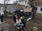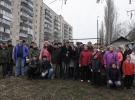 Під деревом розпалили багаття. Поряд постійно знаходиться кілька десятків мешканців. Люди запевняють, що готові стояти за свою прибудинкову територію хоч всю зиму. З іншого боку паркану чергує два десятки здорованів в камуфльованій уніформі з написами "Тайфун" на куртках.