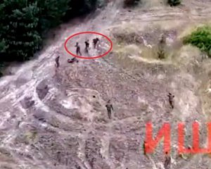 На відео семеро окупантів біжать у бік посадки, а назустріч їм вискакують троє озброєних чоловіків.