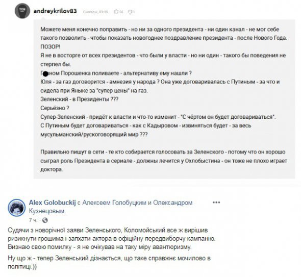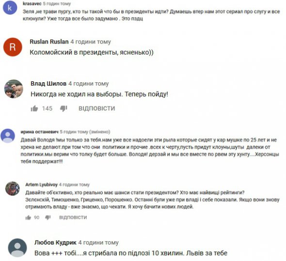 Багато людей не підтримали рішення актора. Зокрема, користувачі звинувачують нового кандидата в президенти в залежності від олігарха Ігоря Коломойського, пише "Апостроф".