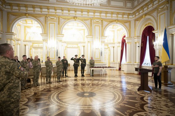 Президент Володимир Зеленський вручив ордени "Золота Зірка" українським військовослужбовцям, яким присвоєно звання героя України. А також - членам родин загиблих бійців, удостоєних цього звання посмертно.