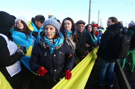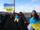 У столиці на мосту Патона відбулася акція "Живий ланцюг Соборності". Вона приурочена до Дня соборності. Саме в цей день y 1919 році був проголошений Акт злуки Української Народної Республіки (УНР) і Західно-Української Народної Республіки (ЗУНР).