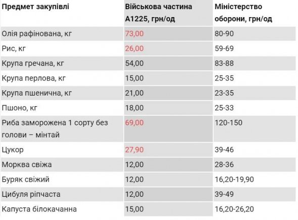 Схожа ситуація і з морквою. Для української розвідки коренеплід коштує 12 грн, а для Міноборони мінімум 28 грн.