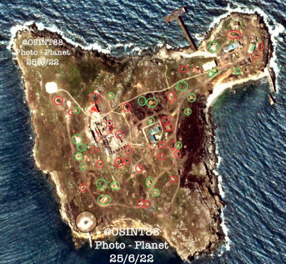 Загарбники облаштували на острові Зміїному справжню військову базу. Звідти вони можуть обстрілювати українську територію та засоби протиповітряної оборони. Для цього їм не потрібно наражати на небезпеку свої кораблі.