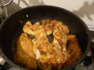 "А тим часом на іншій сковорідці смажу півкільцями цибулю, - коментує вона. – І додаю до неї натерту моркву. Накриваю кришкою і на маленькому вогні тушкую. Окремо натираю трохи твердого сиру. Потім викладаю в посудину обсмажені філе, зверху тушковані овочі і сир, який на гарячій страві повинен розтопитися".