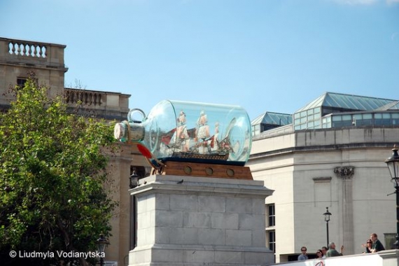 Простора і багатолюдна Трафальгарська площа вражає своєю галасливістю, особливо у вихідні дні, чистотою, красивими архітектурними замальовками, пам'ятниками і звичайно чудернацьким корабликом у великій склянній пляшці.