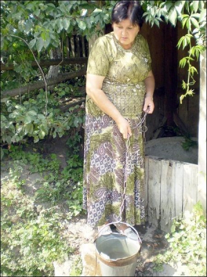 — Проблеми з водою почалися десь два роки тому. Тоді вона текла, як самогонка, тоненькою цівкою. Із лютого цього року зникла. Відтоді треба по 300 метрів до найближчої копанки по воду ходити. І то вона хіба на прання придатна. А за питтєвою — ще двісті далі, — продовжує жінка. — У мене тиск високий, тромбофлебіт, із хребтом проблеми. Доктор казав не піднімати більше, як піввідра. Як приходжу додому з роботи, 12 рейсів із двома повними відрами роблю.