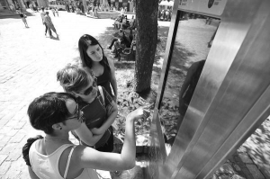 — Даша, вказівним пальцем натискай, — бере доньку на руки. Переглядає список музеїв міста. — Я корінний львів"янин. Але вже 15 років живу в Сибіру. Щороку приїжджаю до батьків. Перш за все йду в центр дивитися, що за цей час змінилося. Торік був здивований тим, наскільки побільшало кафешок і ресторанів. Цього літа поки що найбільша новинка — ось це табло.