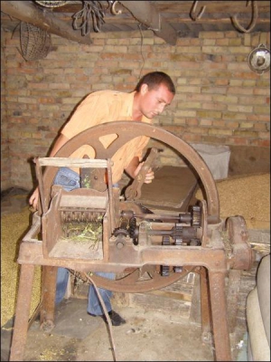 Микола почистив січкарню, змастив деталі машинним маслом. 400-річний механізм працює мов новий. На поважний вік вказує лише іржавий корпус. Весною Пальонко позичив січкарню сестрі дружини.