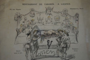 — Оформляти меню сто років тому вважалося престижною справою, — розповідає художник 46-річний Володимир Костирко. — Вони виходили обмеженим тиражем, подавалися на званих вечерях, банкетах, круїзних лайнерах. Художники творили у своєму стилі. Наприклад, француз Жорж Вілла любив малювати проституток. Тому і в переліку страв оголені жінки бенкетують із чоловіками. Меню від митців у ресторанах користувалися роками. Якщо з'являлися нові страви, дописували їх ручкою на звороті. У деяких були навіть ціни на дівчат.