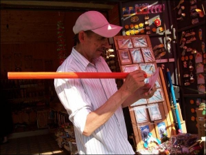 — Найбільший торг улітку та взимку. Багато туристів приїжджає. Я до тисячі олівців витесую. За місяць можу заробити три тисячі гривень, — тішиться Олег, — тут великого розуму не треба, головне — залучити уяву.