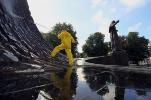— Шевченка не чистили з часу встановлення, — розповідає 24-річний Андрій Шевців, начальник управління внутрішньої політики міськради. — Пам'ятники треба мити хоча б раз на п'ять років. На них осідає пил, падає дощ, листя. Відчищають монумент струменем води різної температури під різним тиском без жодної хімії. Усю брудну воду внизу збирає техніка.