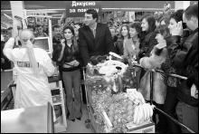 24-річна Оксана, представниця однієї з компаній-постачальників "Метро", мала проводити дегустацію вина. Розлючена черга перегородила парадний вхід візками, тому охорона завела Оксану всередину через чорний вхід. До магазину навіть не потрапив наш фотокор. Люди думали, що він камерою прикривається, тільки б дістатися заповітної мети. Штовханина тривала під музику найнятих фірмою задля свята гуцульських музик.