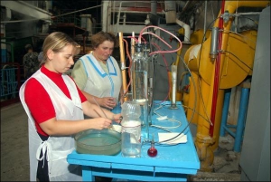 — Уже видно багато дрібненьких кристаликів, — приставляє до лампи скельце зі згущеним цукровим соком апаратник Микола Русенюк, 57 років. — Іще трохи, й вони стануть крупнішими. Залишиться відтиснути воду, посушити — і матимемо перший цукор цього сезону.