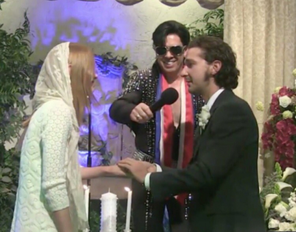 Тому "весілля", пряму трансляцію якого Лабаф нещодавно викладав у соцмережі, виявилося чи то "церемонією обміну обіцянками", чи то черговим дивним перформансом актора.